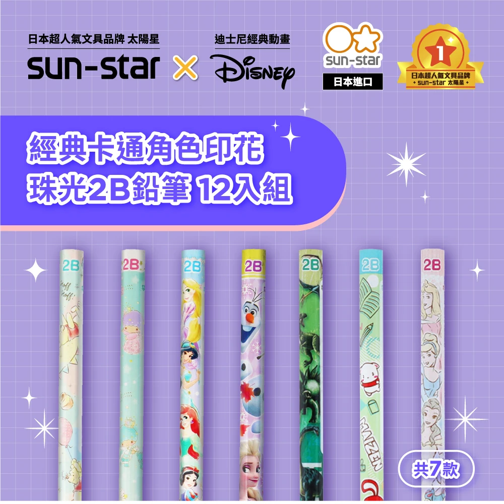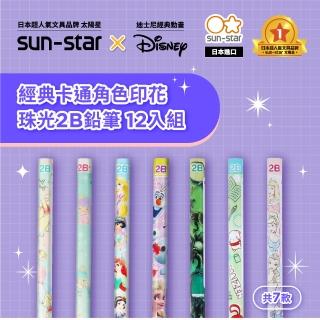 sun-star 珠光2B鉛筆 12入組(7款可選/迪士尼/日本進口/2B鉛筆/公主/雙子星/小熊維尼/冰雪奇緣)