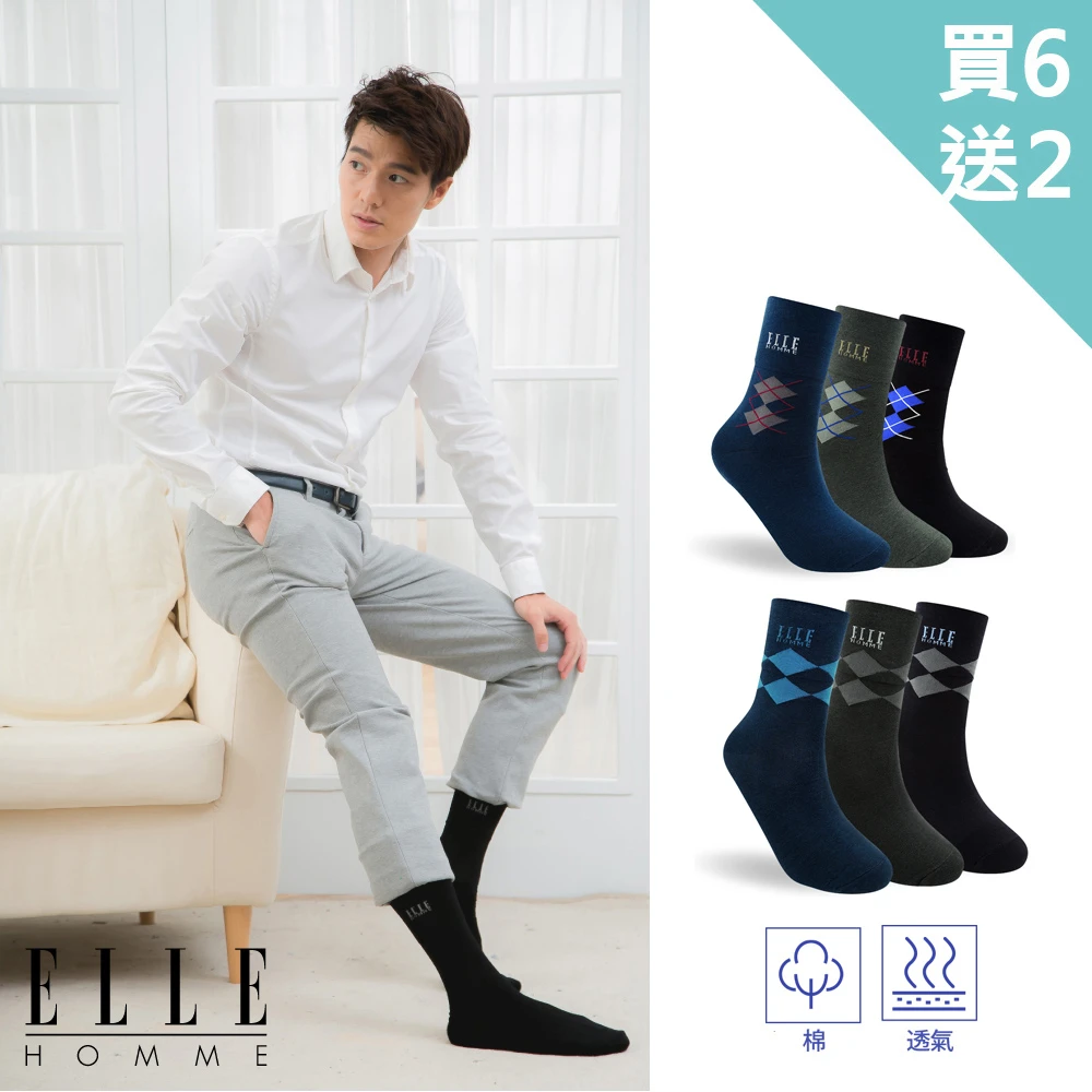ELLE HOMME 買6送2雙組momo獨家特談尊爵寬口紳仕休閒襪(寬口襪/休閒襪/男襪/紳仕襪/長襪)