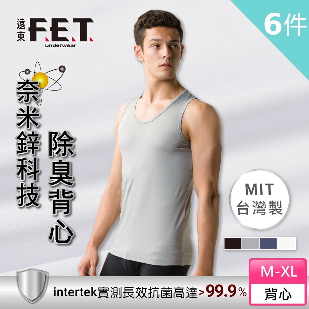 遠東FET 6件組奈米鋅科技除臭背心/運動背心/男背心(抑菌除臭/防曬/抗UV)