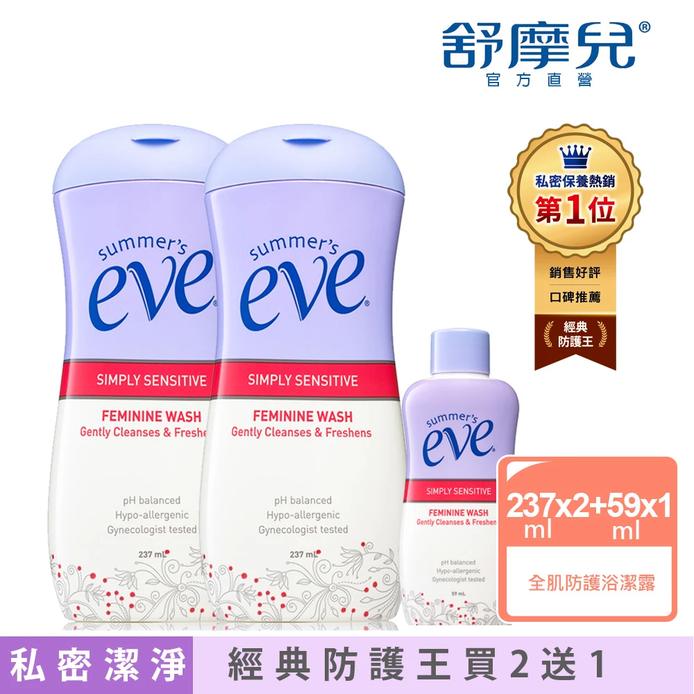 即期品 Summer’s Eve 舒摩兒 經典防護組-浴潔露237mlx2+浴潔露59ml(私密清潔)